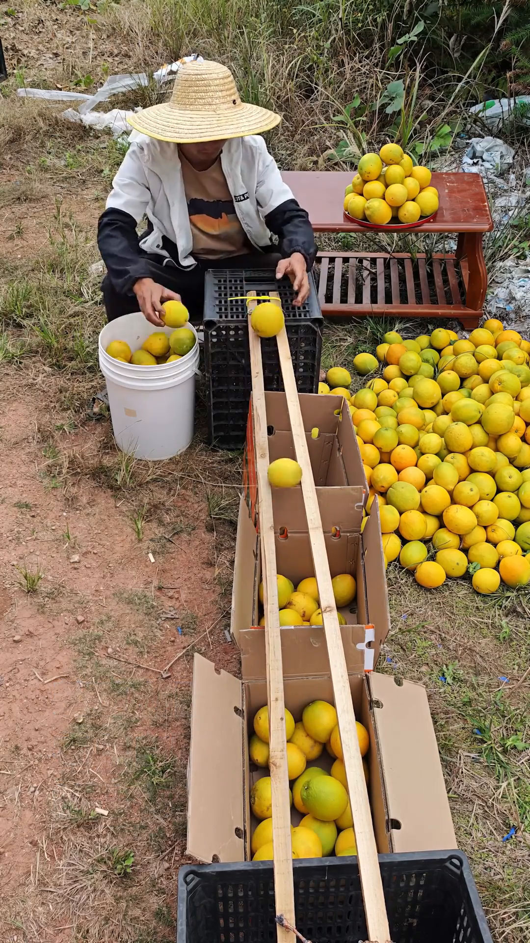 农民自制“分果器”筛选大小脐橙